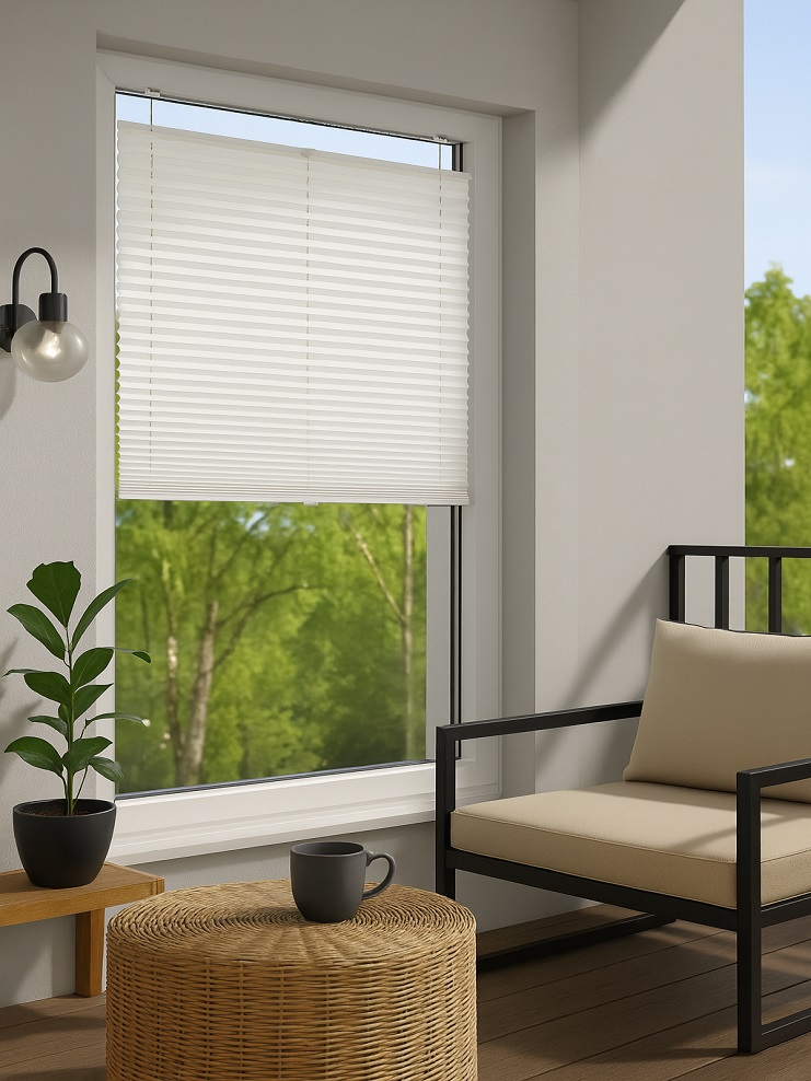 Beyaz Plise Katlanır Cam Balkon Perdesi - Ofis Perdesi - Mutfak Perdesi - Salon Perdesi