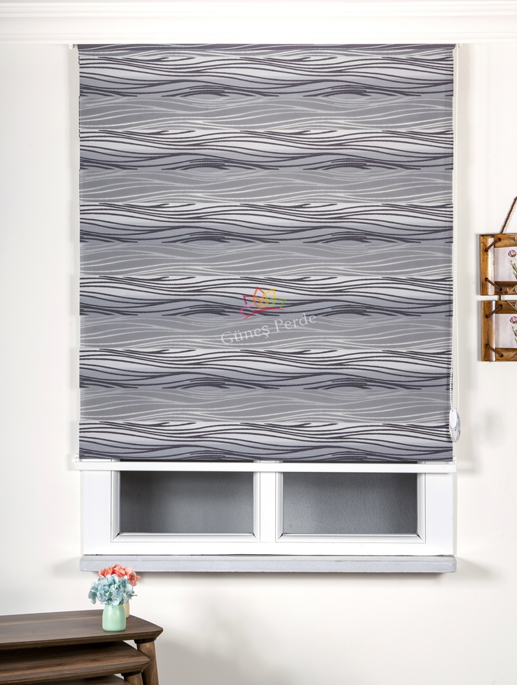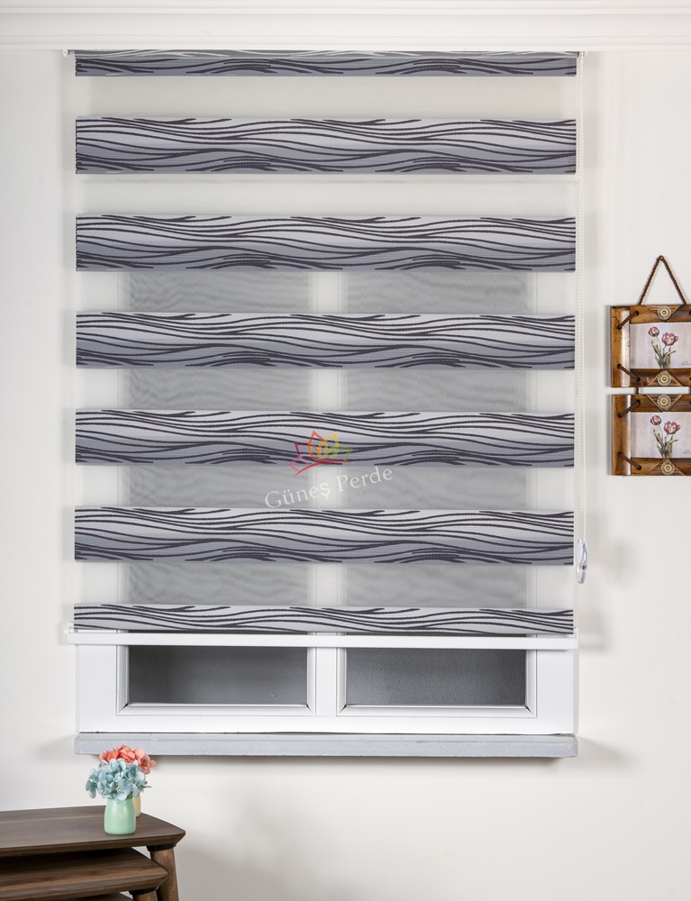 SİYAH GRİ DESENLİ ZEBRA PERDE